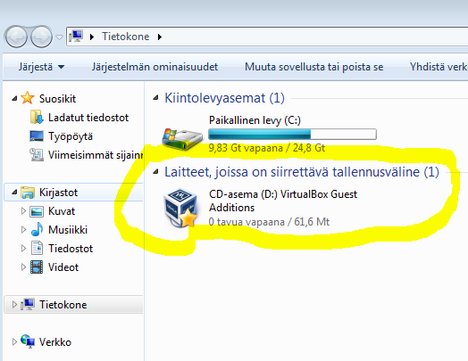 Lisäsin mallikoneelle MUISTITIKUN ja jaoin kansion niin että voin siirtää dokumentteja näiden koneiden välillä. Siirsin Niina.ISON mallikoneelle ja asetin cd levyn niin ikään kiinni siihen.