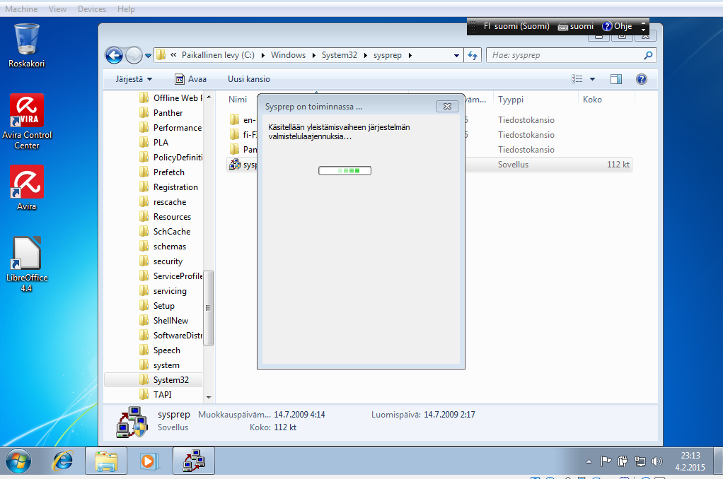 Ja tietenkin kun avaan uudelleen koneen jotta alkaisin tekemään sysprepiä aukeutuu se ikkunaan jossa ei mahdollisuutta avata sitä. Eli jotain meni pieleen. Voihan ville... Otan uudelleen Admin koneesta cloonin ja teen taas uudestaan nuo hemmetin ohjelmat. Prkl... en tiedä tarvisiko mutta teen taas. Olen ikäänkuin luupissa ja en pääse siitä pois. Nyt en kyllä päivitä mitään olkoon. Lataan vain ne pari ohjelmaa.